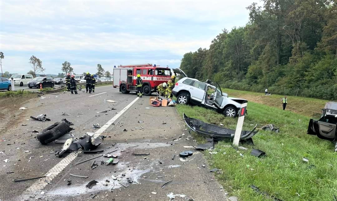 “Od siline udarca automobil je odbačen na travnatu površinu. Skup vozila je u daljnjem kretanju udario u automobil austrijskih nacionalnih oznaka, koje je od siline udarca odbačen u odvodni kanal, dok je vozač slovenskih nacionalnih oznaka izbjegavajući otpale dijelove vozila sletio na zelenu površinu”, rekli su u policiji.