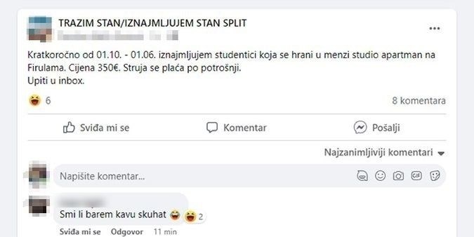 U FACEBOOK grupi Tražim stran/iznajmljujem stan Split osvanuo je neobičan oglas koji je izazvao mnoštvo reakcija i komentara.