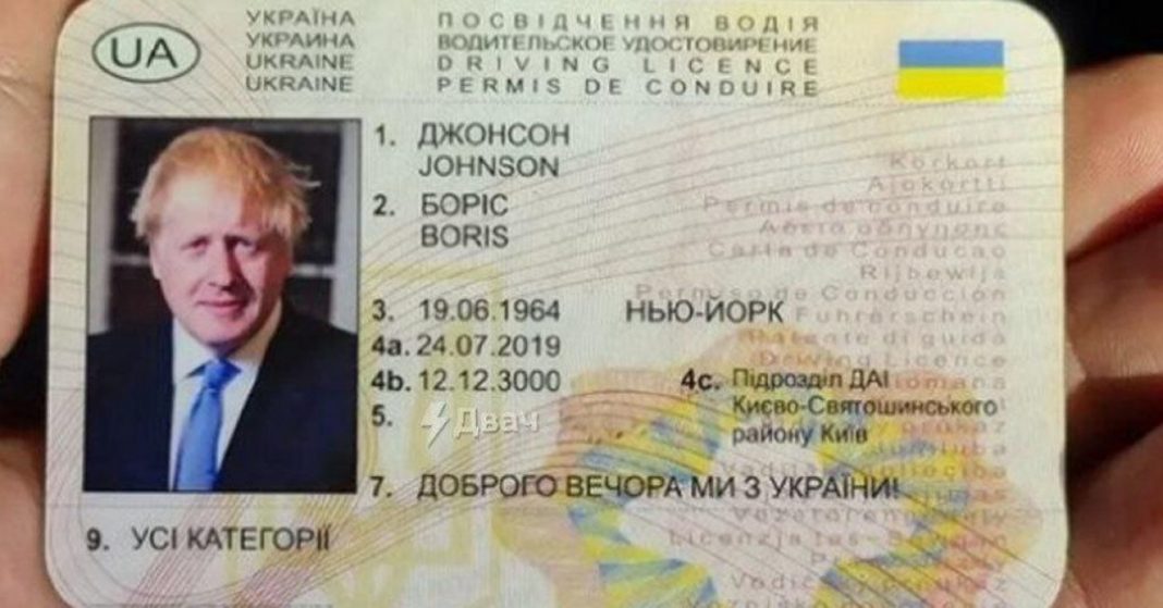Na lažnoj vozačkoj dozvoli, izdanoj u Ukrajini, zajedno sa fotografijom britanskog premijera i njegovim datumom rođenja, piše da je izdana 24. srpnja 2019. godine, na isti dan kada je Johnson preselio u Downing Street 10 i preuzeo vodstvo britanske vlade. Također piše da vozačka vrijedi do kraja 3000. godine.