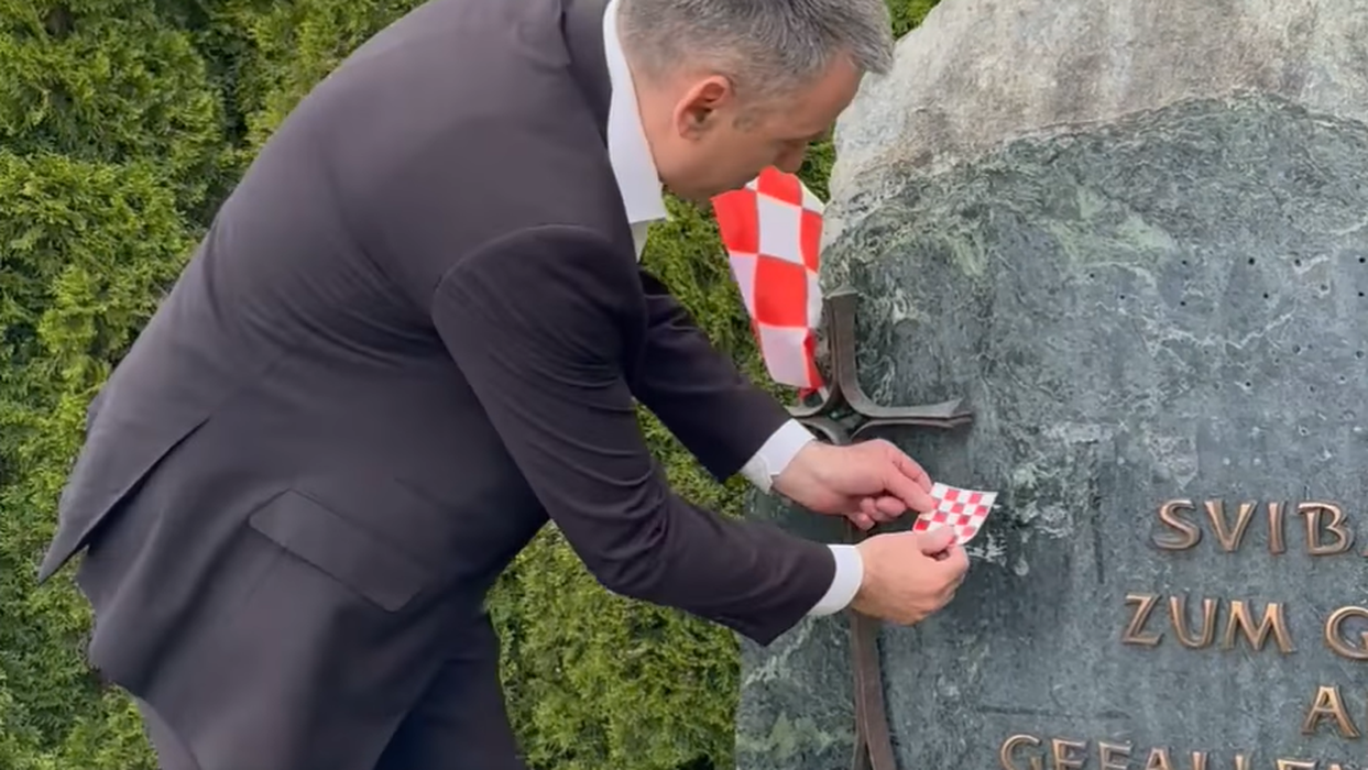 Podsjetimo, prema rješenju o zaplijeni od 20. travnja prošle godine, lokalne vlasti Völkermarkta u austrijskoj saveznoj pokrajini Koruškoj uklonile su sa spomenika na Bleiburgu grb s prvim bijelim poljem. Stoga ga je Ćipe simbolički vratio i zalijepio naljepnicu šahovnice s prvim bijelim boljem upravo tamo gdje je grb stajao.