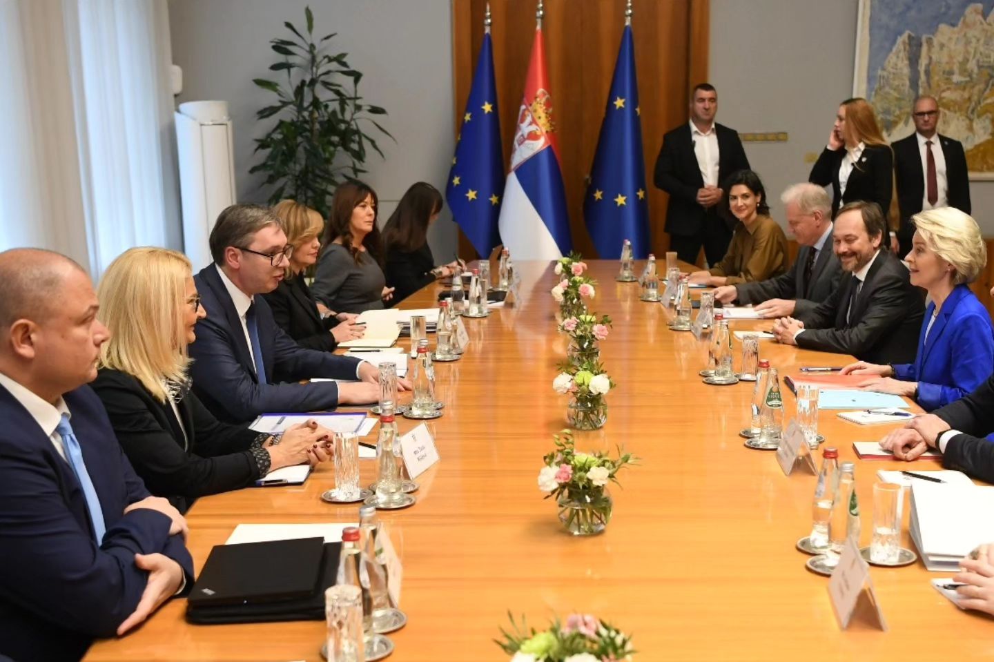 Postoje granični prijelazi, kontrola dokumenata i carine između dviju država, koliko god to u Beogradu zvali “administrativnim prijelazima”. Kosovo će svoje pregovore o članstvu voditi samo, a Srbija će, kada se to dogodi, biti učlanjena u EU bez Kosova, čak i da budu primljeni istog dana! Ursula von der Leyen došla je pred Vučića s “mrkvom i batinom” – praktički s ultimatumom, ali i podrškom za ulazak u EU (pohvalila je Srbiju u tome) te zamahala izdašnim sredstvima od nekoliko milijardi eura, u sklopu šest milijardi eura za privredni razvoj zapadnog Balkana koji još nije unutar Unije. Podsjetimo da su Washington i EU nedavno Vučiću otvoreno rekli da do veljače 2024. godine žele riješiti situaciju s normalizacijom odnosa Srbije i Kosova, koja znači ovo – “de facto” priznanje.