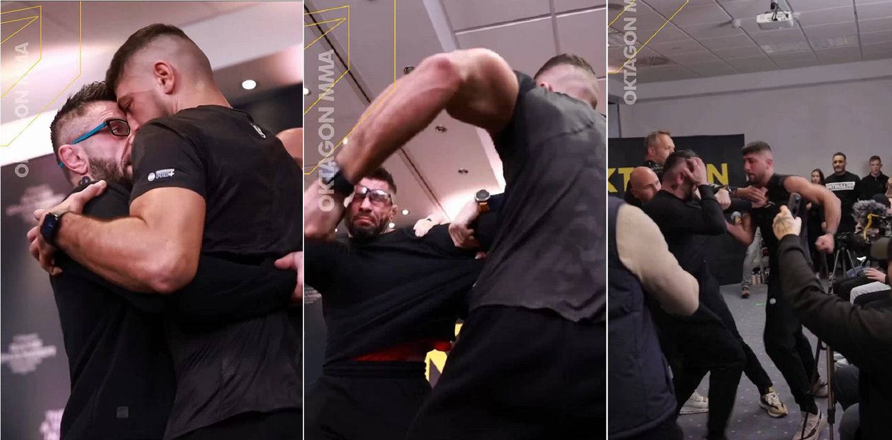 Trebalo je par sekundi da ih timovi i osoblje organizacije razdvoji, budući da sigurno nisu očekivali ovakvu situaciju.