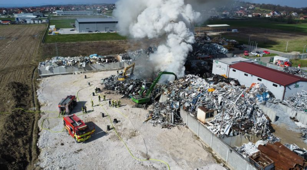 Veliki požar izbio je na odlagalištu otpada tvrtke Ekohold u Božjakovini. Fotografije s mjesta požara objavila je Dugoselska kronika.
