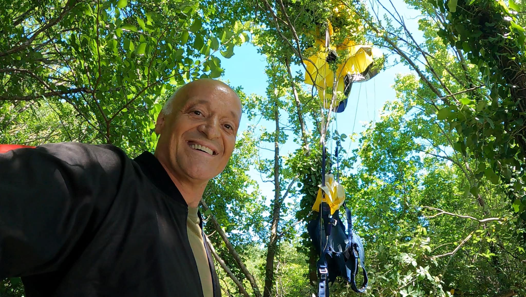 Kad slijećeš u šumu, probaj na mlado drveće i skupi noge, da se ne ozlijediš i ne podereš kupolu i ostaneš visiti. Tako i bi. Događa se. Kupola čitava, ja ok, slijedeći skok otvaranje k’o u knjizi, kako je uvijek (dobro ne baš). Nema toga tko vozi bic (ili motor), a da nije pao. Ili tko leti paragliderom ili zmajem, a da nije završio ili u živici, ili u šumi ili tako to (probao i živicu i šumu i pšenicu kad mi na motornom zmaju stao motor). Ili da roniš, a ostaneš bez zraka (ima budy zato).