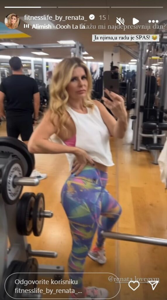 ”Kažu mi najdepresivniji dan? Ja njima, u radu je spas”, napisala je Renata na Instagramu pa pokazala dašak atmosfere iz teretane.