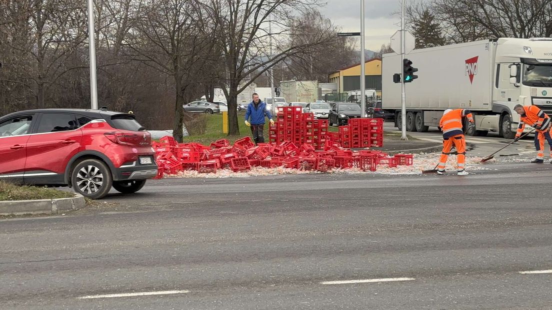 Mnogo stakla i gajbi razasuti su po prometnici, a djelatnici ophodnje cesta ih uklanjaju kako bi se promet što prije stabilizirao.