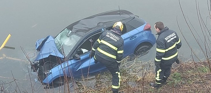 VATROGASCI iz Donjih Andrijevaca jutros su intervenirali na dojavu o vozilu koje je probilo ogradu i sletjelo u kanal Biđ između Divoševaca i Donjih Andrijevaca.