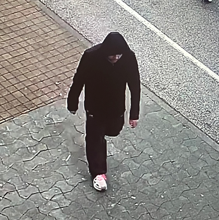 Muškarac kojeg policija traži star je oko 35 godina. Visok je oko 175 centimetara i jače je tjelesne građe. Na fotografijama nosi crnu jaknu s kapuljačom, smeđe hlače i bijele tenisice.