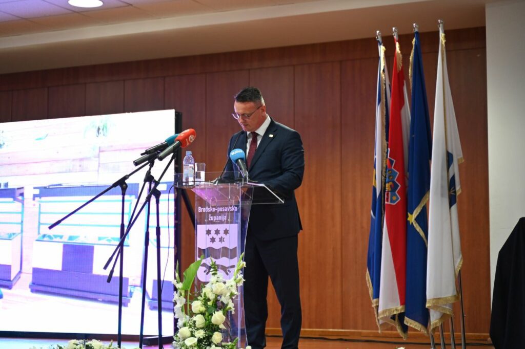 Nakon toga održana je svečanost obilježavanja Dana Brodsko-posavske županije u Glazbenoj školi. Prilika je to bila za osvrt na proteklu godinu. Župan Danijel Marušić istaknuo je brojne projekte realizirane u zadnjih godinu dana. Naglasio je, prije svega, važnost ulaganja u poljoprivredu i gospodarstvo kao temelj rasta i razvoja županije. Potom i u mlade i obitelji te istaknuo niz mjera kojima se nastoji potaknuti njihov ostanak na ovome području.