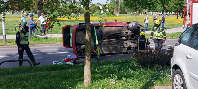 U zagrebačkom naselju Špansko došlo je jutros do prometne nesreće u kojoj se auto prevrnuo na bok.