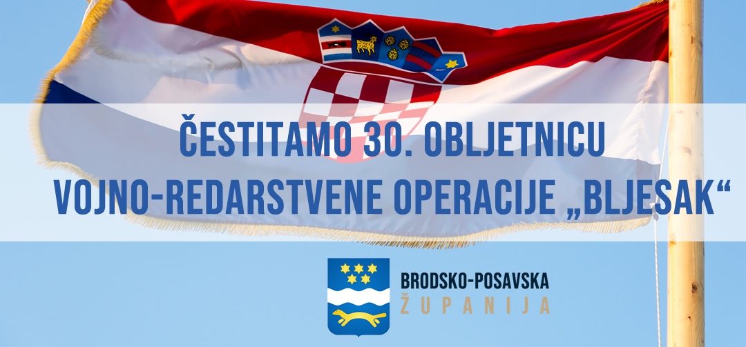 Obilježavanje obljetnice vojno-redarstvene akcije „Bljesak“ veliki je dan za našu županiju i njezine stanovnike kada se s velikim ponosom i pijetetom prisjećamo jedne od najvećih hrvatskih pobjeda u Domovinskom ratu zahvaljujući kojoj je Brodsko-posavska županija postala teritorijalno cjelovita.