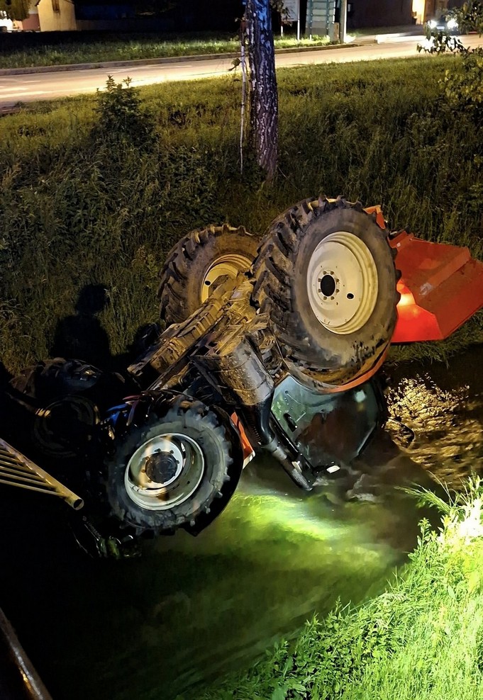 Kako doznajemo, u kabini traktora bila su dva muškarca, Nešto poslije 2 sata u mjestu Trenkovo kod Požege vozač je izgubio nadzor, srušio ogradu mosta, izletio u potok Stražemanku i okrenuo se na krov.