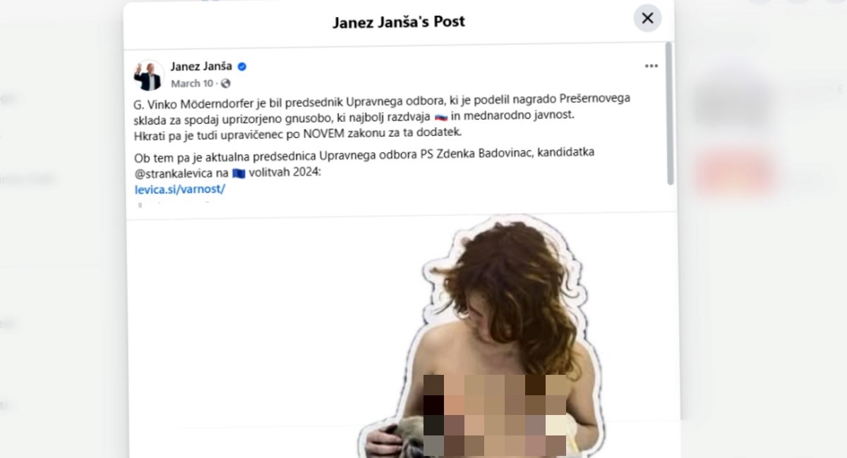 Plakati i jumbo plakati diljem Slovenije od veljače prikazuju sliku slovenske umjetnice Maje Smrekar kako doji psa, uz slogan Promjena za narod, prestiž za elitu. Maja Smrekar (47) izjavila je da se ta slika koristi bez njezine dozvole i da se iz konteksta izvlači jedna fotografija iz većeg projekta pod nazivom K-9 Topology, koji istražuje veze između ljudi i pasa.