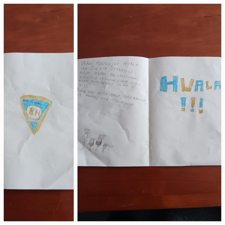 „Dragi policajci hvala vam što ste otpratili moju mamu do splitskog rodilišta te nakon toga moja mama rodila je malu seku.