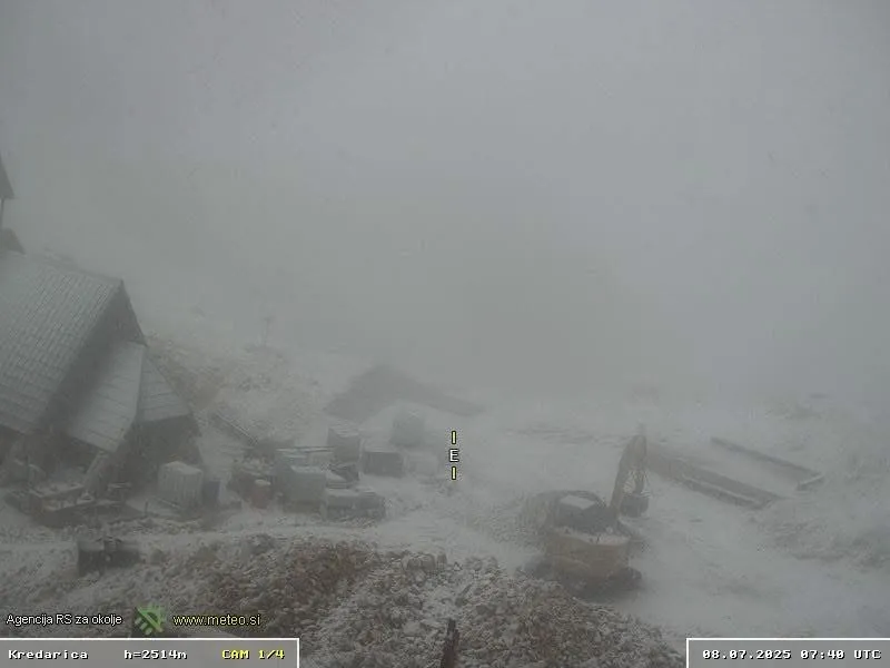 Zbog nailaska hladne fronte i naglog pada temperatura, snijeg pada u Sloveniji iznad 2000 metara, na Kredarici i Kaninu u ovim trenucima.