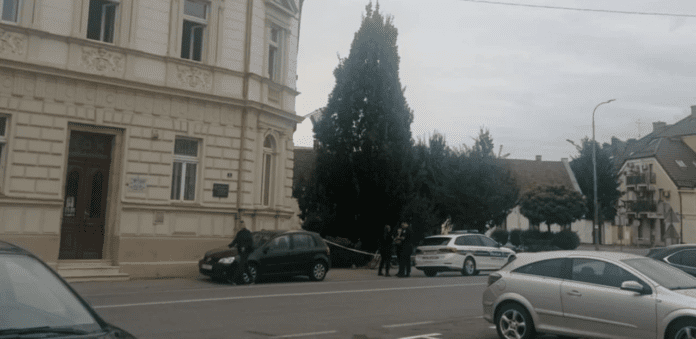 Policija osigurava mjesto događaja, a dio trga je ograđen trakama.