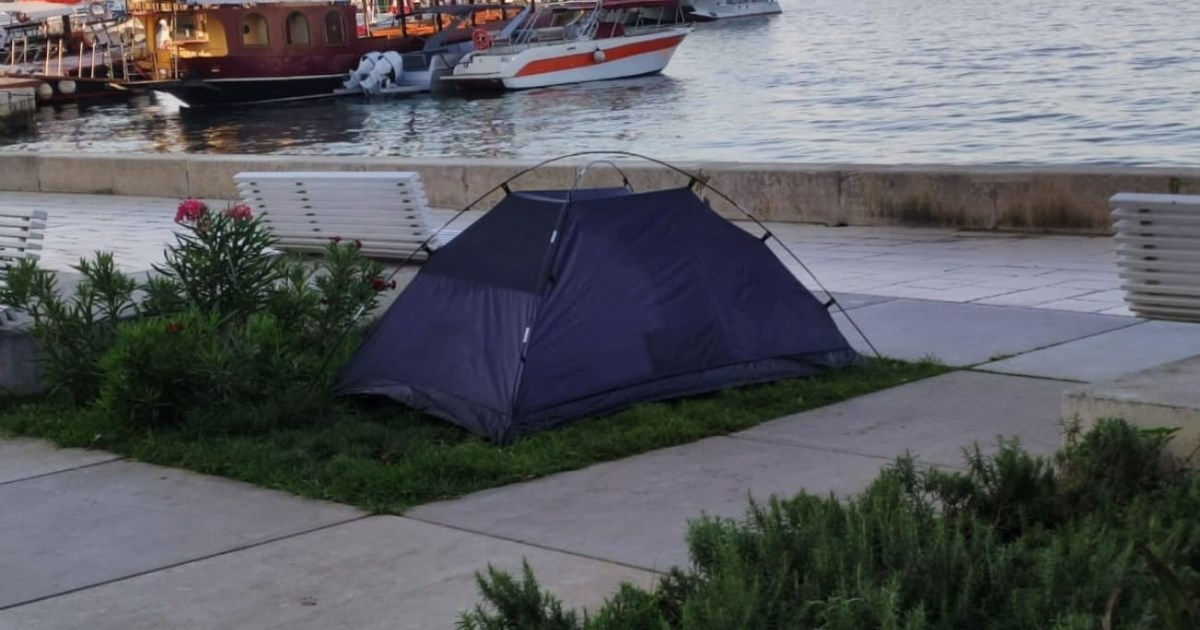 Kako prenosi portal Dalmacija Danas, fotografija koja ovih dana kruži društvenim mrežama prikazuje šator postavljen usred splitske Rive – u njemu je, sudeći prema svemu, netko i prespavao.