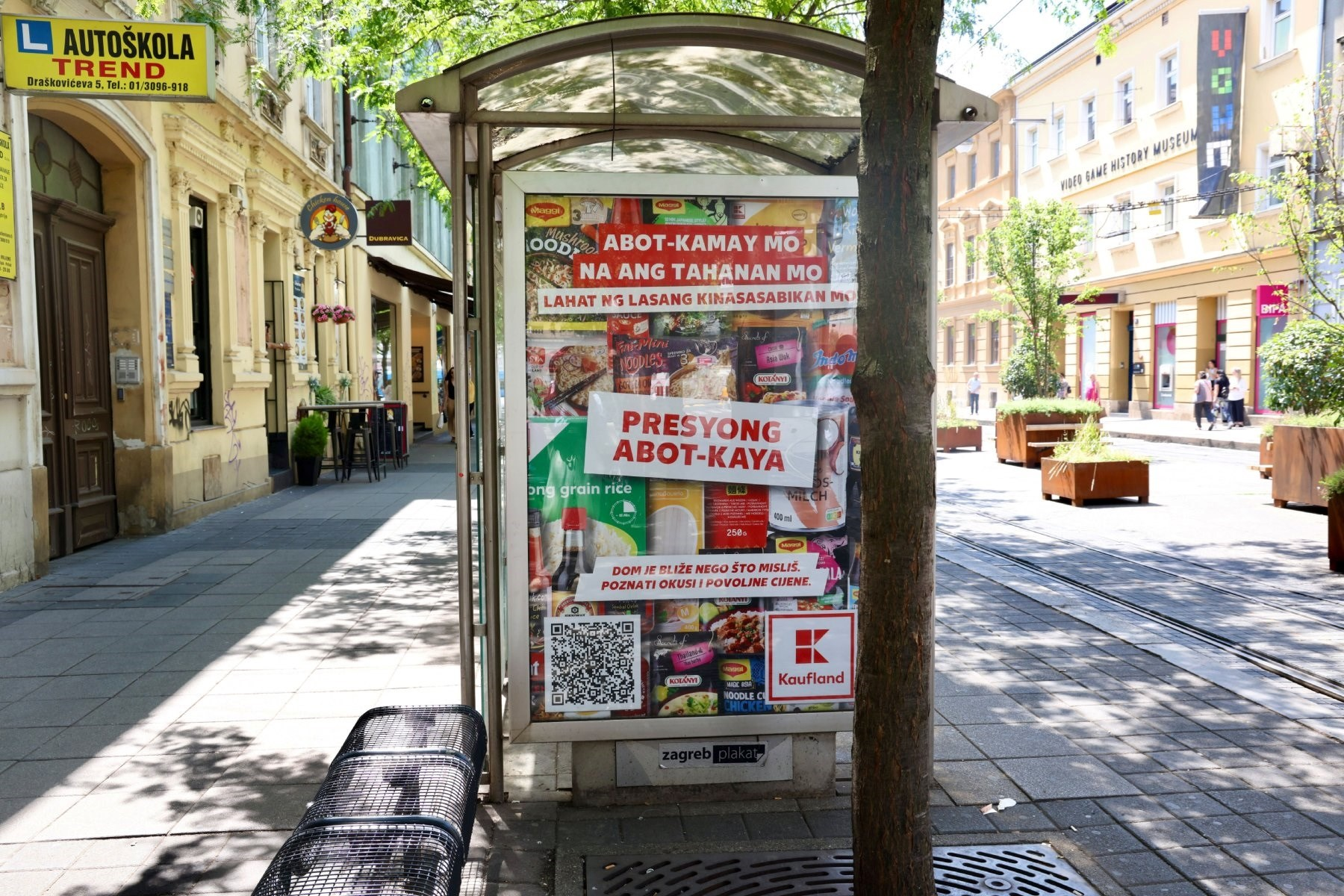 Trgovački lanac Kaufland nedavno je u Hrvatskoj objavio reklamne plakate na tagaloškom jeziku, kojim se govori na Filipinima i koji predstavlja osnovu službenog filipinskog jezika. Plakati su zapaženi na tramvajskoj stanici u Draškovićevoj ulici u Zagrebu, a prikazuju proizvode iz filipinske kuhinje uz natpis:
