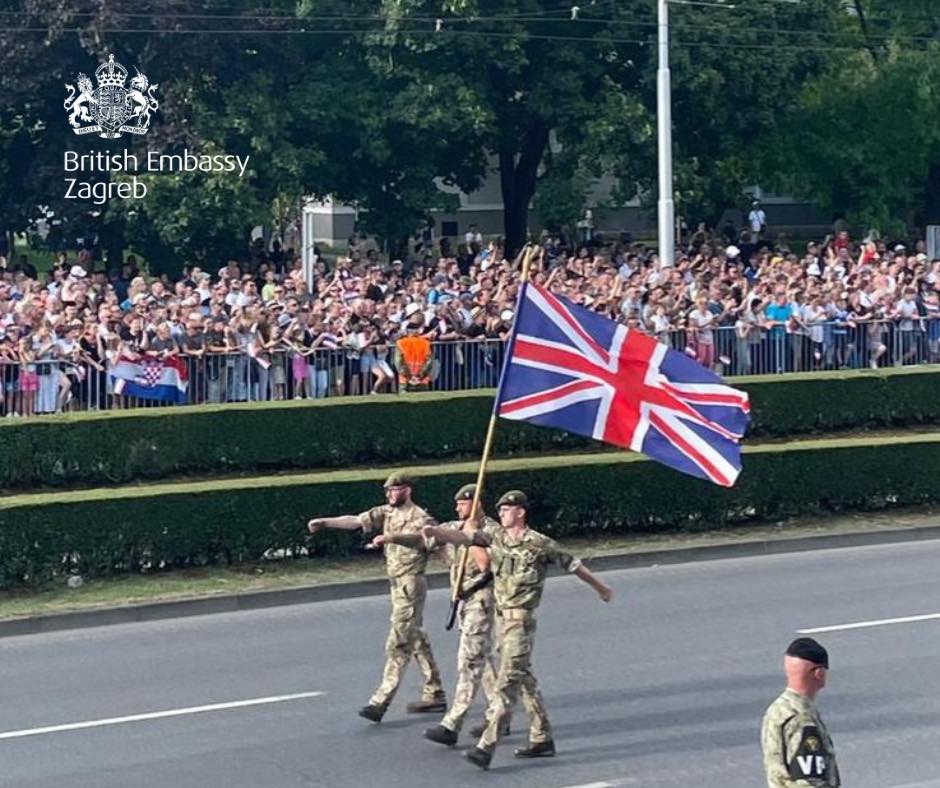 Paradu su s tribina pratili obrambeni ataše Andrew Higgs i zamjenica veleposlanika, ujedno i otpravnica poslova, Samantha Dunger – izvijestilo je veleposlanstvo putem društvenih mreža.