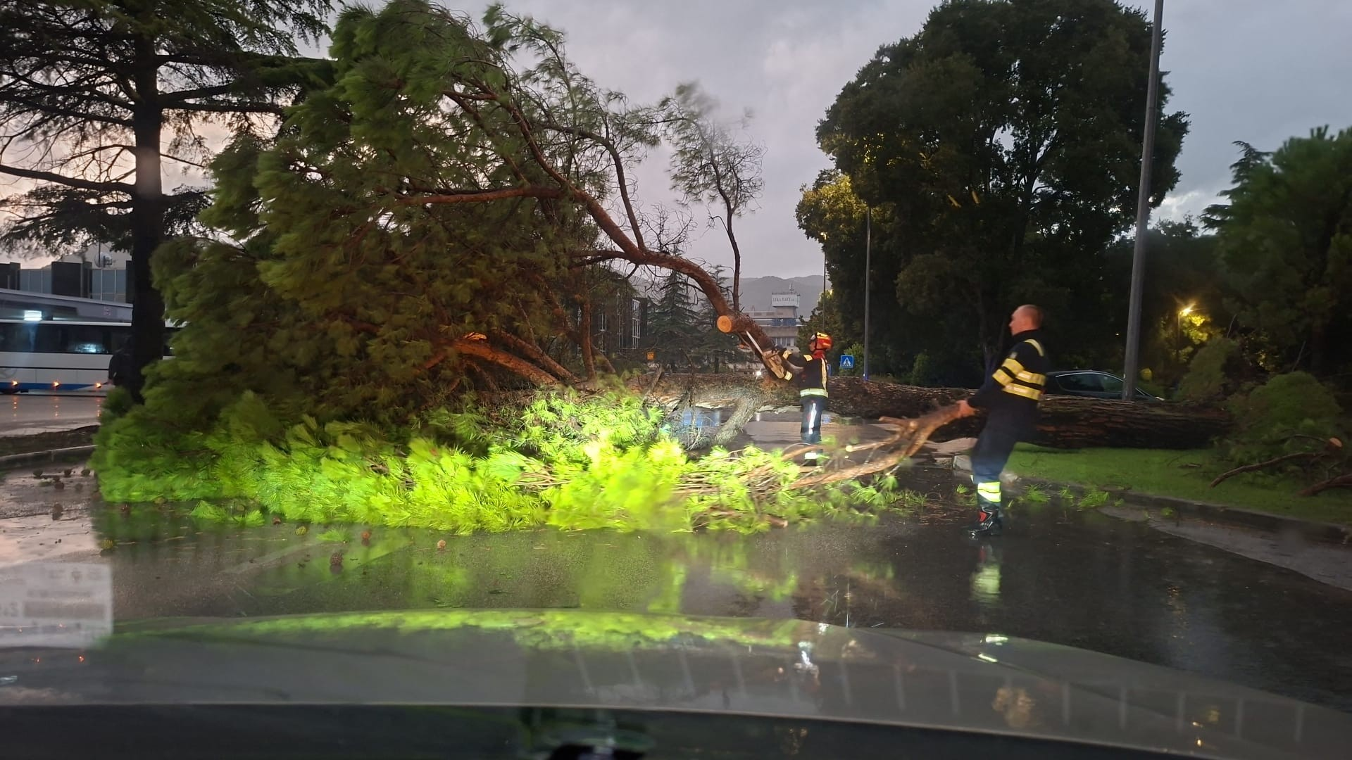 U Pločama je snažan vjetar srušio stablo u blizini autobusnog kolodvora, pa su na teren morali izaći vatrogasci., piše N1.