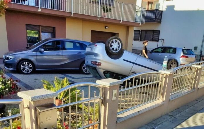 Bizarna nesreća u Bjelovaru. Autom uletio u dvorište,završio na krovu,a ogradu ni okrznuo….