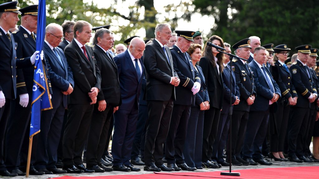 „Danas smo se najviše osvrnuli na godinu koja je bila iza nas, nagradili smo brojne policijske službenice i službenike koji su pokazali izuzetnu hrabrost ove godine. Iznijeli smo podatke koji mogu biti itekako ohrabrujući kada govorimo o efikasnosti hrvatske policije. Ona već petu godinu ima prosjek riješenosti kaznenih dijela više od 70 posto, što je jedan od najvećih postotaka u Europi, a i šire. Po nizu parametara radimo vrlo dobar posao. Međutim, svjesni smo izazova s kojima se suočavamo, pogotovo izazova novog vremena, utjecaja društvenih mreža. Tome smo danas dali poseban naglasak jer nam je jasno da ćemo se s tim rizicima za sigurnost naših građana, gostiju i prije svega djece, kada govorimo o društvenim mrežama, morati adekvatno nositi u razdoblju koje je pred nama“, rekao je ministar Božinović i zaključio: „Ovdje smo u prigodi da se zahvalimo svima onima koji su postavili temelje hrvatske policije, brojnim branitelja koji su proizašli iz redova hrvatske policije“.