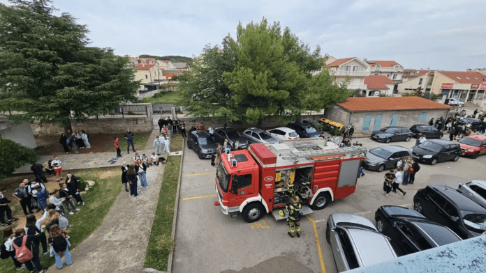 Riječ je o najvećoj školi u Šibensko-kninskoj županiji s više od 700 učenika. Pripadnici JVP Vodice pohitali su na intervenciju s dva vozila i utvrdili kako gori plastična masa u sanitarnom čvoru, kaže zapovjednik JVP Vodice Ivica Begić.