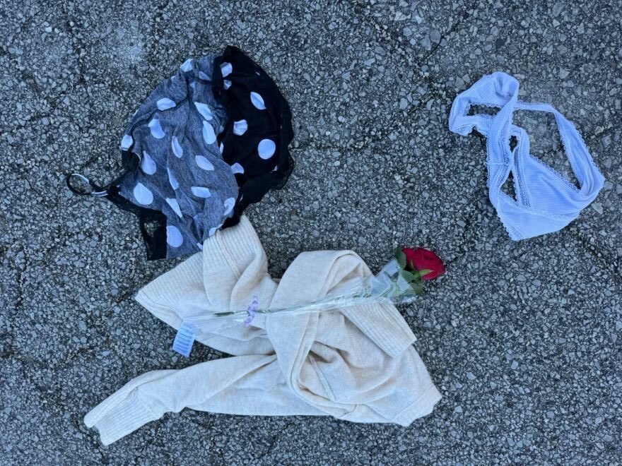 Na parkiralištu pokraj doma DVD-a Petrovsko, nasuprot mjesnog groblja, jutros je zatečen neobičan prizor. Prolaznici su na asfaltu pronašli žensku majicu, tajice, gaćice te crvenu ružu umotanu u prozirni celofan s ljubičastom mašnicom.