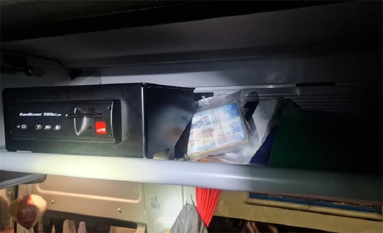 Detaljnim pregledom vozila, u pretincu iznad prvog desnog sjedala, gdje se nalazi ugrađen tahografski uređaj, demontažom plastične zaštitne oplate pronađena je skrivena vakumirana vrećica s gotovinom u ukupnom iznosu od 15.700,00 eura i 2.290,00 švicarskih franaka.